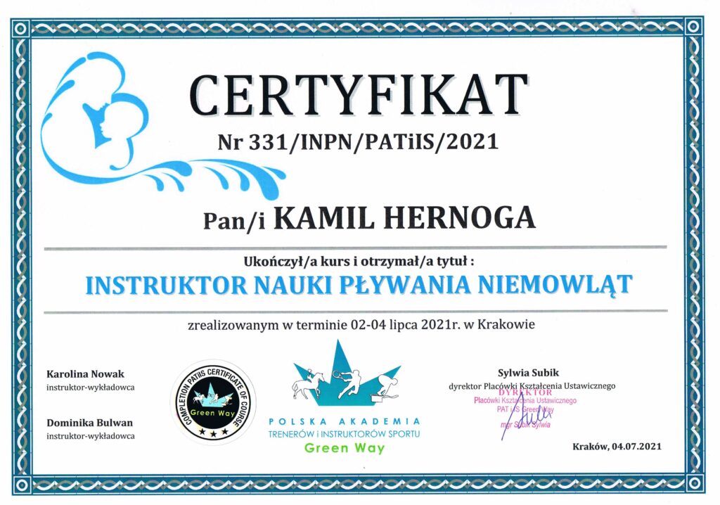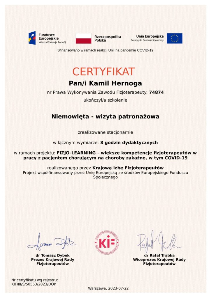 Nazywam się Kamil Hernoga, jestem fizjoterapeutą oraz instruktorem pływania niemowląt. Jako fizjoterapeuta zdobywałem doświadczenie w najlepszych klinikach zarówno w Polsce, jak i Europie tj. Paley European Institute czy obecnie MIRAI CLINIC.